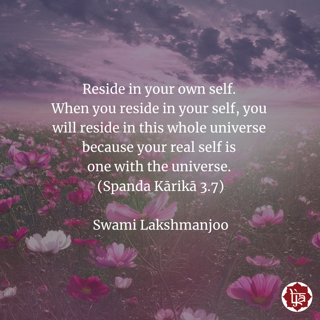Do not try to dwell in each and every being. Reside in your own self. When you reside in your self, you will reside in this whole universe because your real self is one with the universe. (Spanda Kārikā 3.7)